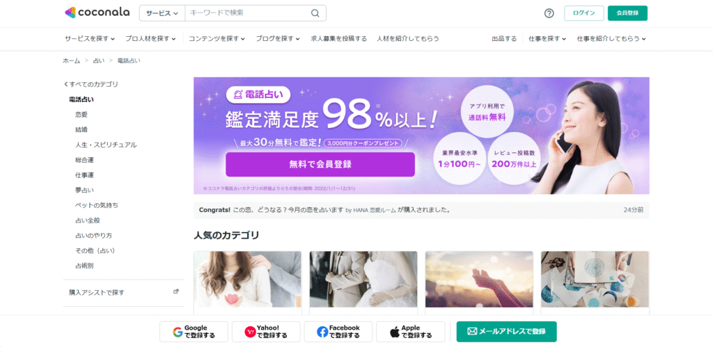 適用条件:当サイトから「ココナラ電話占い」にアクセスするだけ!
